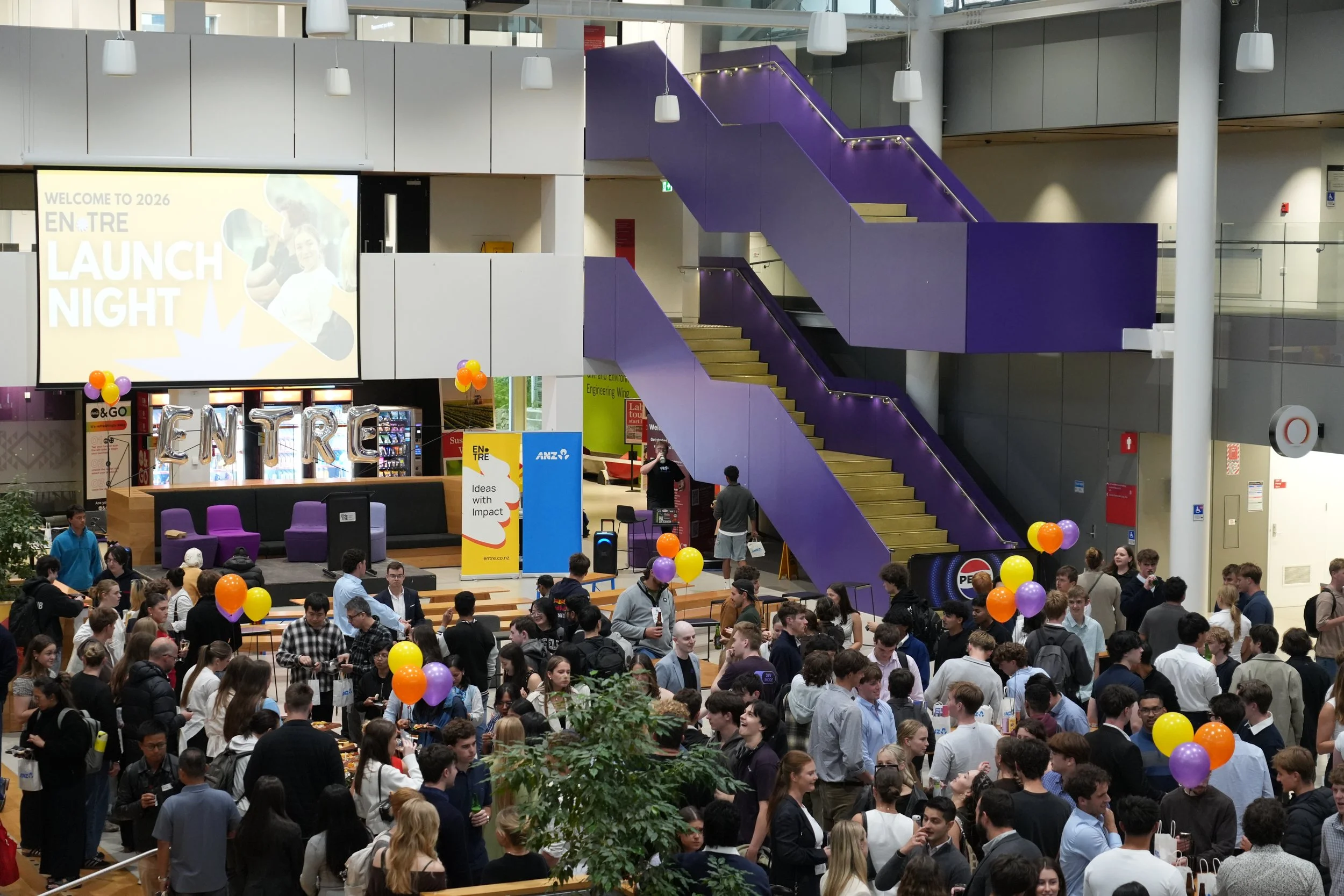 The Grand Launch of Entré took place on the campus of the University of Canterbury, attracting over 300 attendees. This event presented a fantastic opportunity to introduce the new executive team, announce both returning and new sponsors for the club, and provide an overview of the upcoming year.